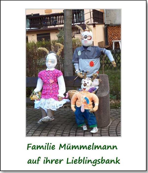 Die Angerhasen schwärmten 2012 wieder aus und machten es sich an ihren gewohnten Plätzchen gemütlich. Neuzugang war dieses Jahr Mick K. (gesprochen Mick-Key). Er ist der Schumahcer unter den Osterhasen. Heimlich flitzt er mit seinem getunten Trittroller um den Anger. Weer ihn dabei „blitzen“ möchte, muss sich auf die Lauer legen. ;o)