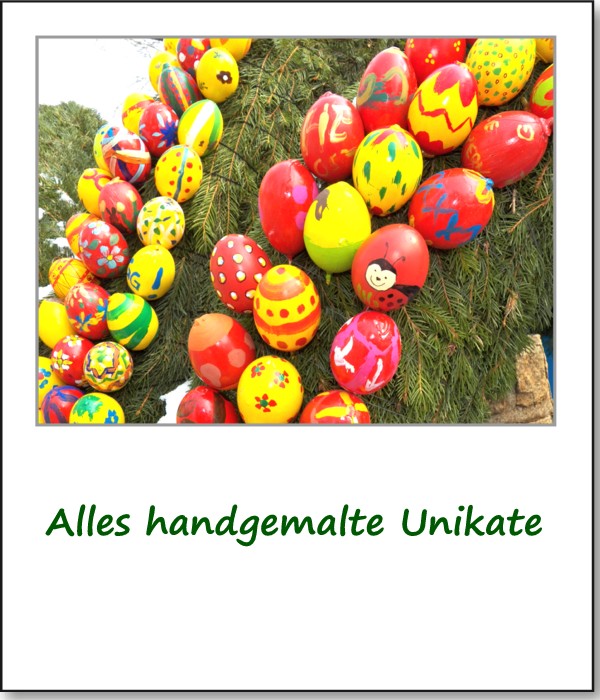 Ein paar Eindrücke des Parkbrunnens haben wir allerdings wieder festgehalten. In diesem Jahr wurden – als kleiner Sonnenersatz – deutlich mehr gelbe Eier gesteckt, sodass der Osterbrunnen schon von weitem strahlte. Ein nette Kontrast gegen die grau-weißen Schneehaufen drumherum.