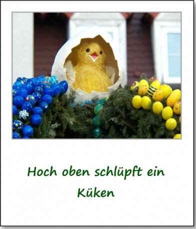 Auf dem Rückweg von Saalfeld hielten wir natürlich auch in Triptis an. Der dortige Osterbrunnen gehört mit zu den größten in der Region. Auch hier lässt sich das Brunnenteam jedes Jahr etwas neues einfallen. Und so verwundert es nicht, wenn das Osterbrunnen-Areal von Jahr zu Jahr weiter expandiert. Dieses Jahr hat es in Triptis einen strategisch günstig gelegenen Baum „getroffen“. Er wurde kurzer Hand in einen Ostereierbaum umdekoriert. Eigentlich wirkt nicht schlecht, aber wenn man das Saalfelder „Referenzobjekt“ gerade eben bestaunt hat, dann könnte der Triptiser Baum schon noch ein paar Ostereier vertragen. 😉