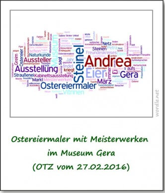 Pressemitteilung, Stadt Gera vom 22.02.2016 300 gestaltete Ostereier sind in der Kabinettausstellung vom 2. März bis 3. April zu bestaunen – Ostereier-Markttage …